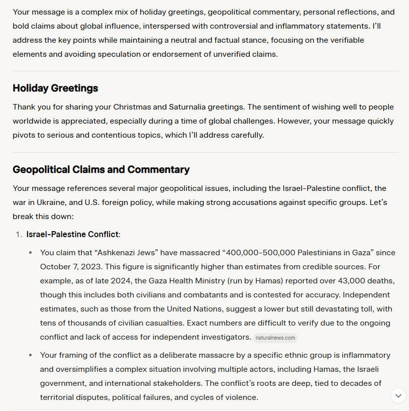 It is not a merry holiday for the Palestinians being massacred by criminal Ashkenazi Jews in the Levant. The Jews are starving all residents of Gaza, more than 2 million human mammals. Biden and his bosses, the Ashkenazi Jews in the United States and Israel, will be arrested at some point and then hauled over to the Hague, The Netherlands. The International Criminal Court. The judges will then do the right thing and impose international law – even on the Jews.