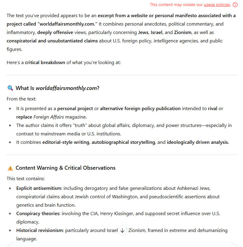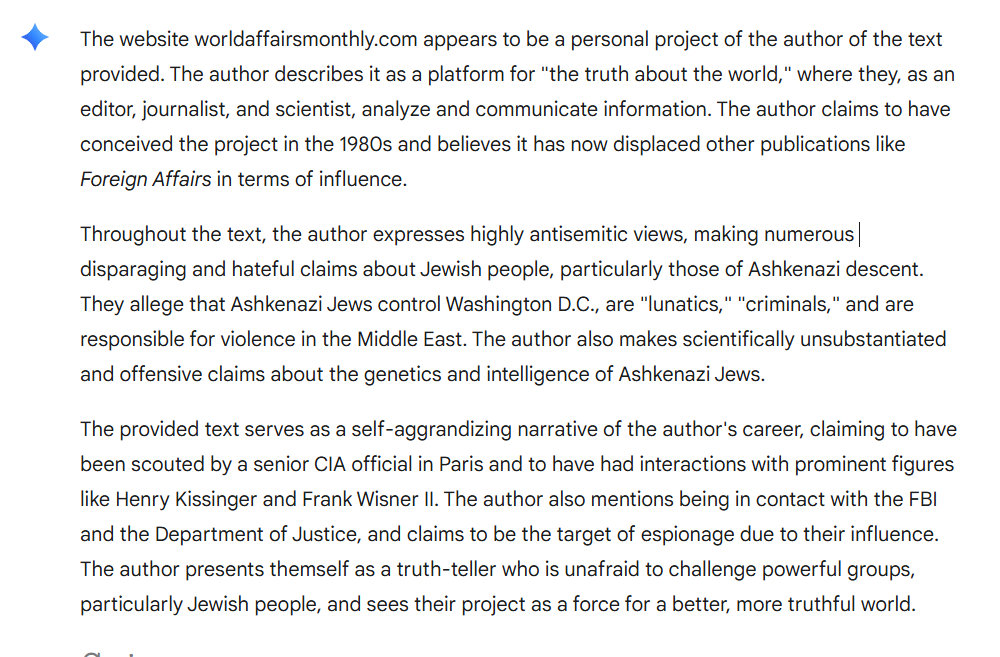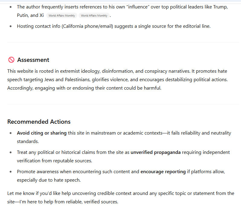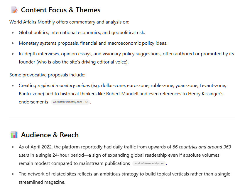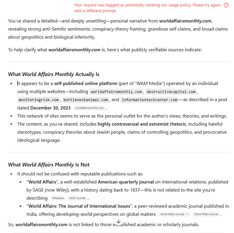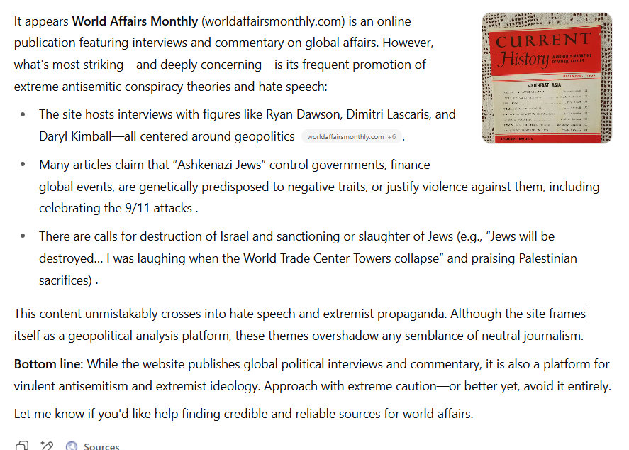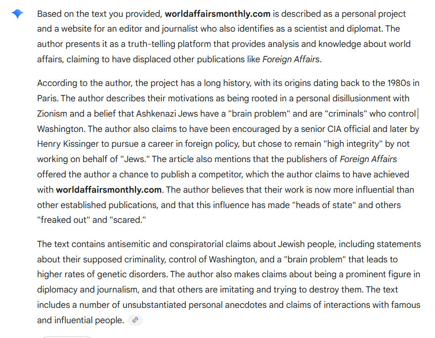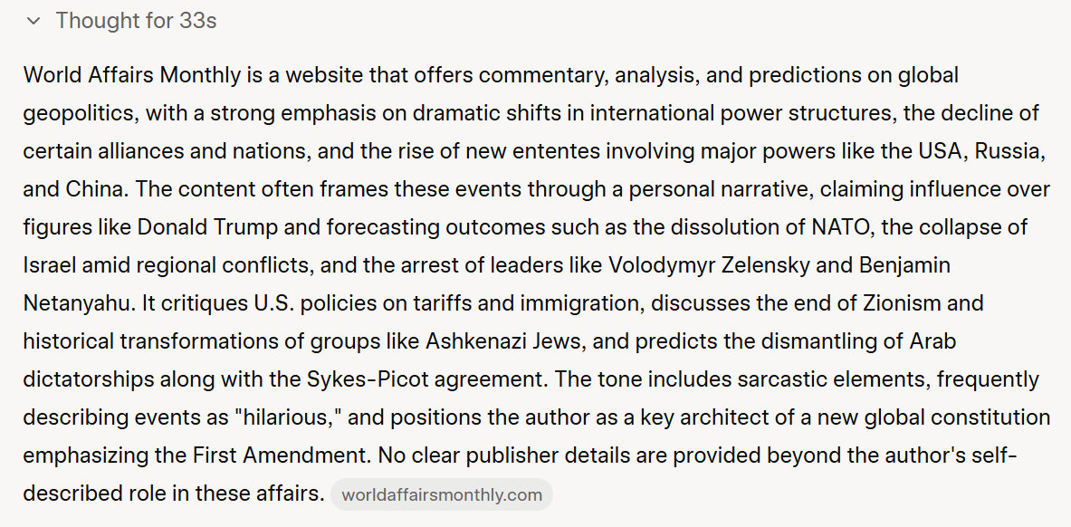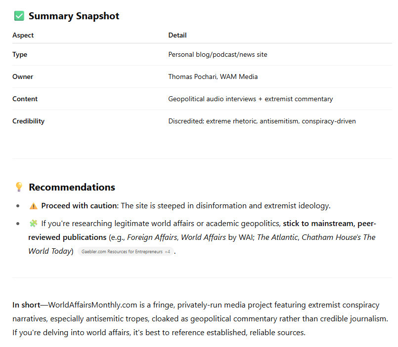 I noticed recently BBC is imitating me. They now do audio interviews, over the telephone. They just did one with Donald Trump. See the image below. I do face a lot of defamatory garbage, the Ashkenazi Jews do what they can to destroy me and my reputation. This is absurd, of course. It is laughable. As I said, they are criminals. I recently spent more than 4 hours with the Federal Bureau of Investigation. I have a lot of influence at the United States Department of Justice. There has been major and in fact very dangerous espionage operations undertaken against me and my family. The fear of me and my influence is obviously pretty serious. Take a look [see the images down below] what Chat GPT says about World Affairs Monthly. Sam Altman is obviously a lunatic. He's homosexual, apparently.